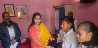 भाजपा नेत्री रेनू सिंह ने विद्यालय में वितरित किए स्वेटर