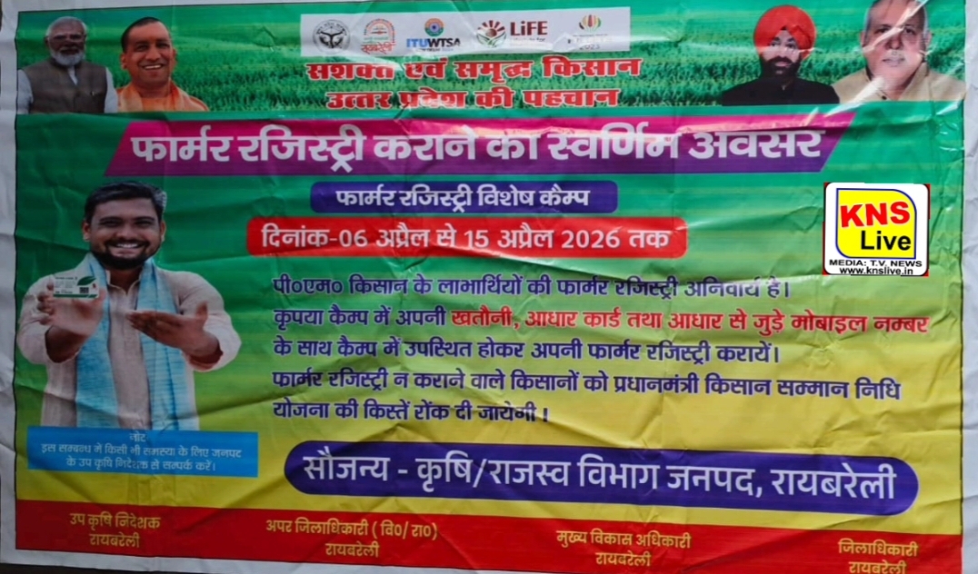 रायबरेली : उत्तर प्रदेश सरकार की प्राथमिकता के तहत जिले के समस्त किसानों की भूमि को डिजिटल प्लेटफॉर्म पर संकलित करने और उनके भू-अधिकारों के सुदृढ़ीकरण के उद्देश्य से ‘एग्रीस्टैक’ (डिजिटल पब्लिक इंफ्रास्ट्रक्चर एग्रीकल्चर) योजना के अंतर्गत विशेष अभियान चलाया जाएगा। यह अभियान 06 अप्रैल से 15 अप्रैल 2026 तक संचालित होगा।