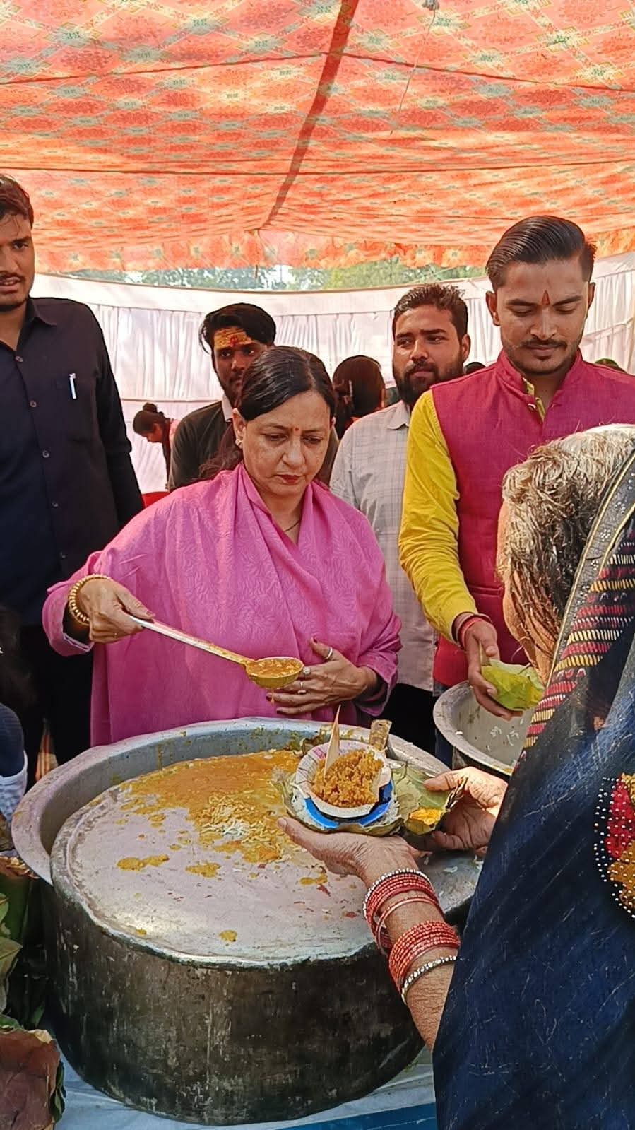 पूनम सिंह ने अपनी आध्यात्मिक यात्रा की शुरुआत लालगंज के ऐहार स्थित सुप्रसिद्ध प्राचीन बालेहश्वर बाबा मंदिर से की। यहाँ उन्होंने पूरी श्रद्धा के साथ भगवान शिव का विधि-विधान से जलाभिषेक किया और बेलपत्र अर्पित कर पूजन किया। इस दौरान उन्होंने स्थानीय निवासी विमल गुप्ता द्वारा आयोजित विशाल भंडारे में भी सहभागिता की। यहाँ उन्होंने न केवल स्वयं प्रसाद ग्रहण किया, बल्कि श्रद्धालुओं के बीच प्रसाद वितरण कर सेवा भाव का परिचय भी दिया।